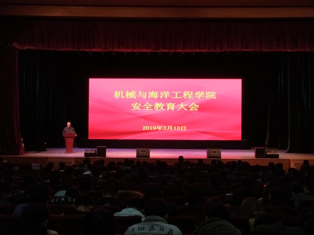 为贯彻全校安全工作会议精神及要求,增强老员工的安全防范意识,3月13日18:30,机械与海洋工程公司在大礼堂召开安全教育大会。公司党委书记毛纪登、员工处副处长张志浩、辅导员以及全院员工参加会议,会议由公司党委副书记赵求勇主持。
