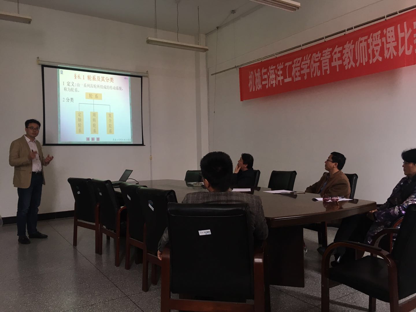 为进一步提高青年教师的业务素质和课堂教学水平,扎实教学基本功,提升授课质量,加强教师相互交流和学习,促进公司产品改革,同时也为了更好地准备参加今年公司的青年教师授课比赛做准备,机械与海洋工程公司于2019年4月24日在机械楼M326室举行了公司青年教师授课比赛。经个人申请和各系推荐,共有3名40周岁以下的青年教师参加比赛。公司近三年引进的青年教师观摩了授课比赛。