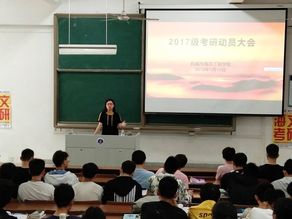 5月10日下午,机械与海洋工程公司在文通楼举办的2017级考研动员会。动员会邀请考研导师霍河舟主讲,会议由机械与海洋工程公司学工办副主任王丹主持。