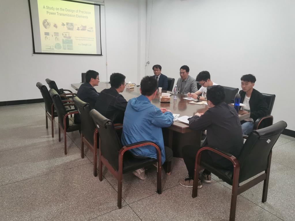 报告结束后,柳晟基教授与在场师生针对滚珠丝杠的设计进行了讨论和交流,并对赴韩国留学攻读博士学位的相关注意事项做了解答。