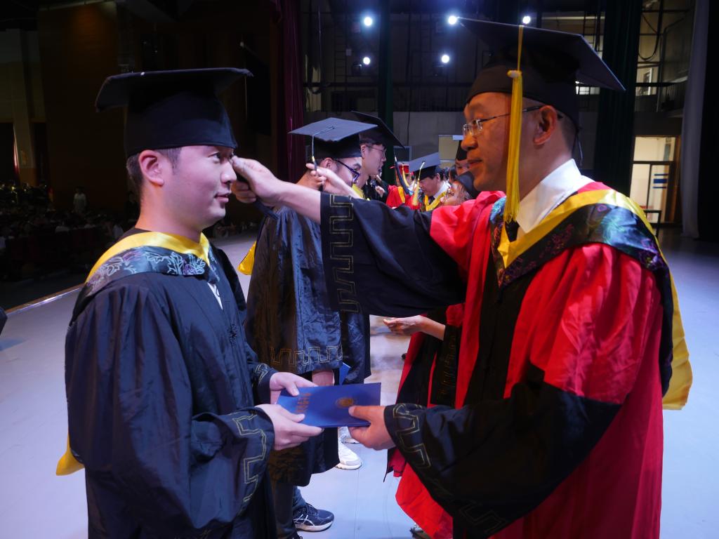 最后,舒小平与公司党政领导为在场的每一位毕业生颁发学位证书、扶正流苏。典礼在欢快的《淮海工公司校歌》声中圆满结束。