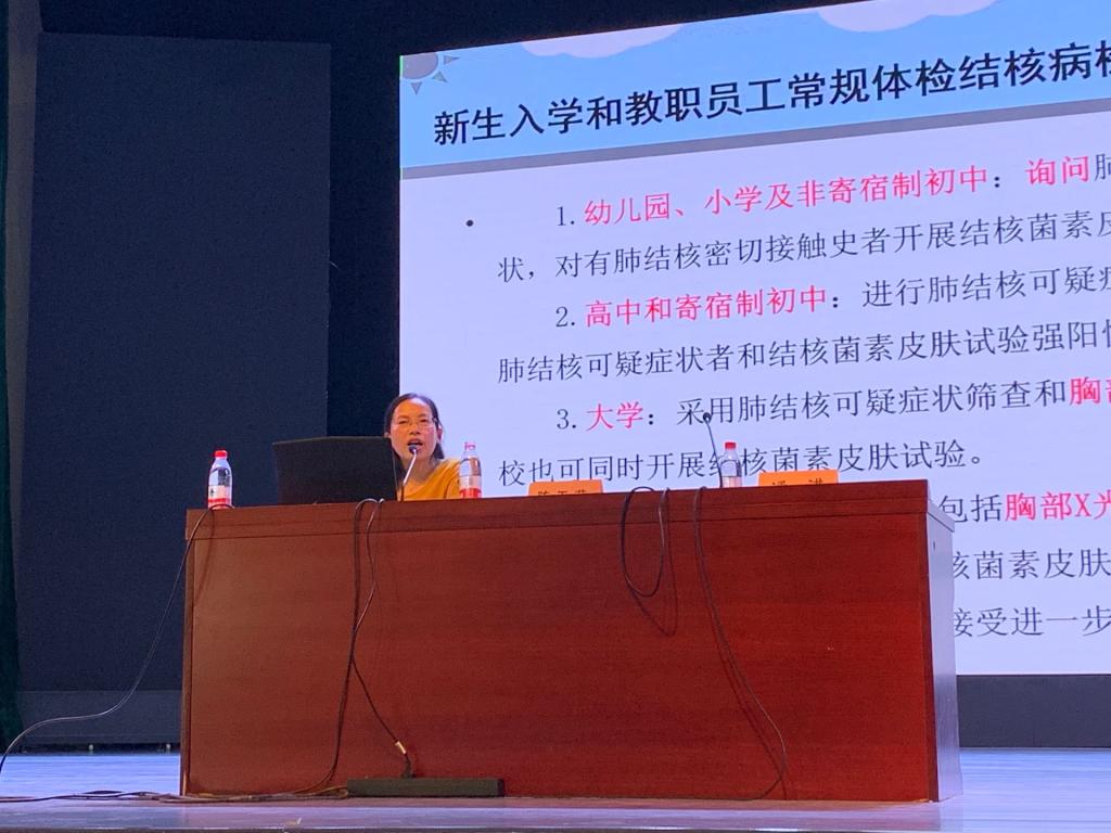 陈玉芹首先对肠道、蚊媒、鼠媒等传染病各季度易发传染病的种类做出详尽介绍并关切同学们做好相关防控措施。紧接着她又介绍了结核病的检查方案和相关预防工作,提醒大家加强对结核病的防范。她表示我国作为结核病高负担国家,任何人需加强对结核病的认知及预放,防止结核病的进一步传播和扩散。最后,陈玉芹向全体同学介绍了流行性感冒、麻疹、流行性腮腺炎及水痘等其他易发传染病及相关预防措施,提醒大家做到早发现、早诊断、早报告、早治疗、早隔离,将传染病的危害控制到最低。