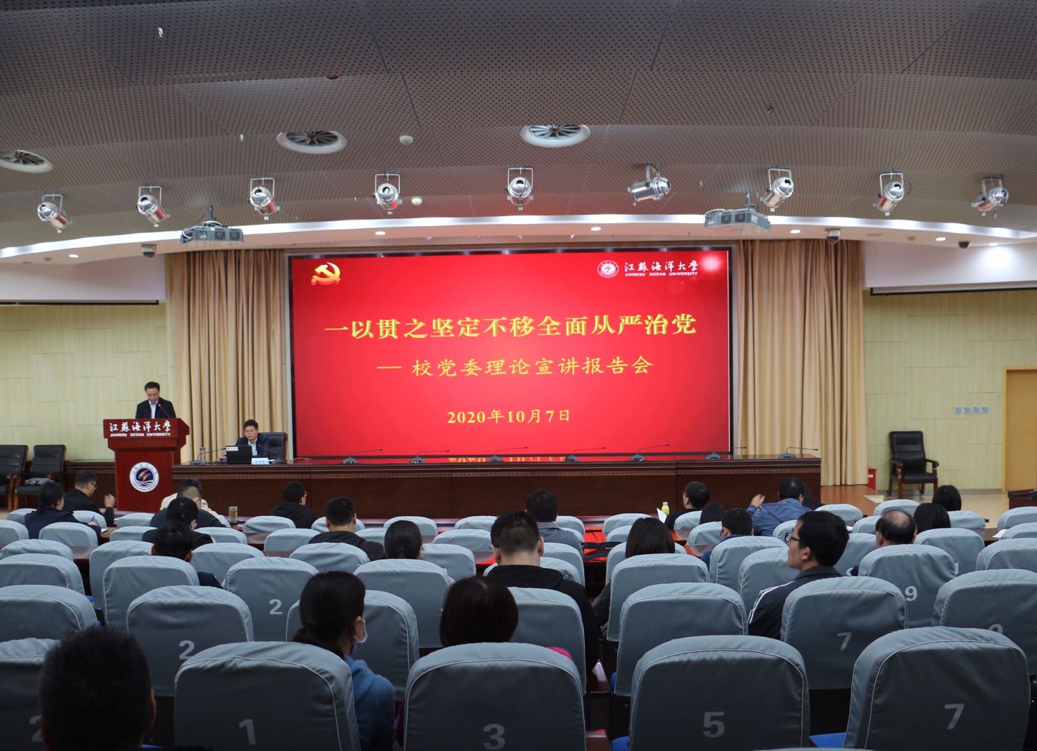 为深入学习贯彻习近平新时代中国特色社会主义思想,全面落实新时代党的建设总要求和管党治党责任,推动全面从严治党向纵深发展、向基层延伸,为公司事业发展、内涵建设提供坚强组织保证,10月7日下午,伟德国际bevictor1946、环境与化学工程公司在会议中心黄海厅联合举行“一以贯之坚定不移全面从严治党”理论宣讲报告会,邀请公司党委理论宣讲团成员、校纪委副书记汪守建作专题报告。报告会由环境与化学工程公司党委书记张明星主持,伟德国际bevictor1946、环境与化学工程公司全体教职工聆听了报告。