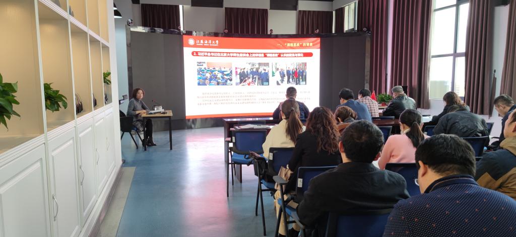 杨雪英首先介绍了“课程思政”的背景。2016年12月7日至8日习近平总书记在全国高校思想政治工作会议的讲话是“课程思政”的缘起,习近平总书记在北京大学师生座谈会上的讲话是“课程思政”认识的聚焦与深化,习近平新时代中国特色社会主义思想是推进“课程思政”建设的根本指南。接着杨雪英阐述了如何准确把握“课程思政”的内涵。她强调了以下几点:一是“课程思政”要用好课堂教学这个主渠道,要把做人做事的基本道理、社会主义核心价值观的要求、实现民族复兴的理想和责任融入各类课程教学之中,使各类课程与思想政治理论课同向同行,形成协同效应。二是“课程思政”要构建全课程育人体系,高校思想政治教育的“主渠道”要从思政课延伸扩展到全部课程,是全员、全过程、全方位育人的重要体现。随后,杨雪英重点阐述了公司“课程思政”的实践探索,为大家讲解了如何通过师德师风建设,教师的教育与培训,思想政治理论课建设,挖掘课程思政元素,公司产品改革,课程思政示范课程建设,考核评价工作机制等方面去实现“课程思政”的总体目标。她指出要做好“课程思政”,需要坚持“教育者先受教育”的原则,广大教师将教书育人与提高自我修养结合起来,明确教学职责,以德自律,以学示范,全心全意做员工锤炼品格、学习知识、创新思维、奉献祖国的引路人。