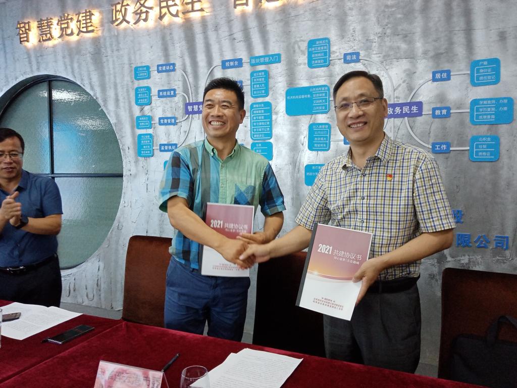 参加活动人员先后参观了高新区二支部党员之家,中山博爱之家、公益使者书苑、首善高新区、大美花果山公益文化长廊、高新区二支党员活动室、民革党员之家思想教育基地。在党员活动室,大家肃穆站立、共唱国歌,进一步增强了党组织的凝聚力和战斗力。机电工程系党支部书记王晓丽对习近平总书记“七一”重要讲话精神进行了解读和归纳。随后,陈书法与蔡卫民共同签署了双方共建协议。