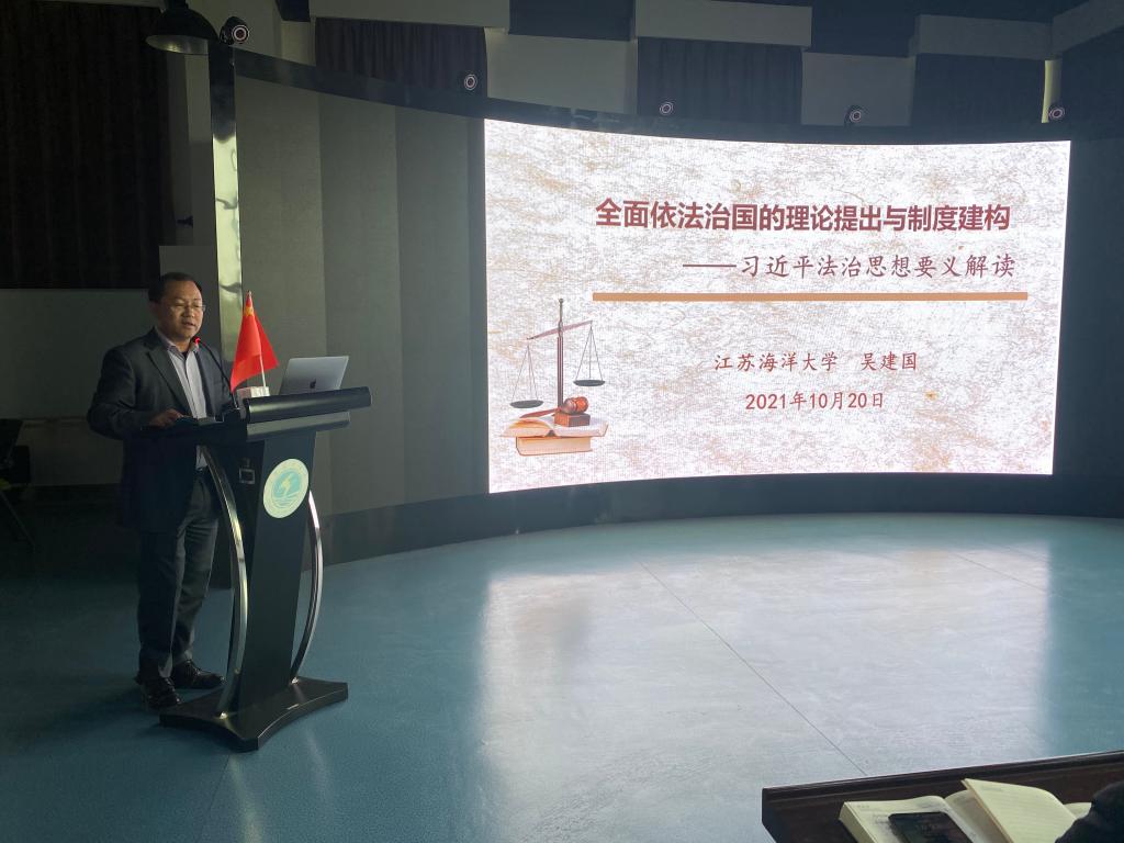 吴建国博士从全面依法治国的背景、全面依法治国的提出以及全面依法治国的制度建构等三个方面进行论述。深刻阐述了习近平总书记全面依法治国思想的重大意义和主要内容。通过吴建国博士的报告讲解,促使大家深入领会习近平法治思想,进一步明晰法治在国家治理和社会管理中的重要作用,认识了党的领导、人民当家作主、依法治国的有机统一关系。大家表示,作为高校教师必须做到立足本职求发展,认真守法做表率,为实现国家的科学立法、严格执法、公正司法、全民守法的新格局作出应有的贡献。