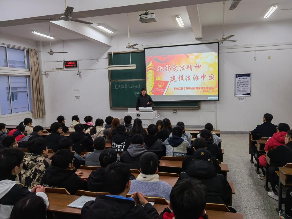 12月2日下午,在国家宪法日即将到来,为普及宪法知识,加强法治教育,着力提升班级班会的重要作用,伟德国际bevictor1946在文通楼303教室召开题为“弘扬宪法精神,建设法治中国”的宪法教育主题公开示范班会。本次班会由机械192班组织开展,公司党委副书记高勇、全体辅导员、部分班主任、各班级班长、团支书和员工代表到场观摩学习,班会由机械192班班长黄禹涵同学主持。