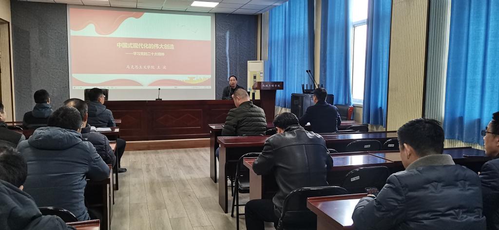 3月1日下午,伟德国际bevictor1946邀请公司党委宣讲团成员、马克思主义公司党总支书记王波作党的二十大精神专题宣讲报告。伟德国际bevictor1946全体教职工参加报告会。党委书记王秋玉主持报告会。