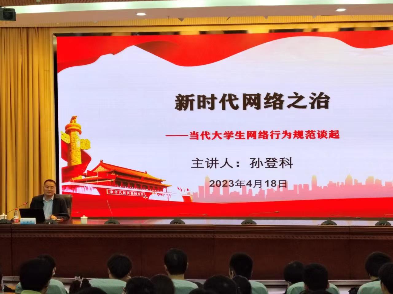 针对当前高校网络诈骗案件频发和老员工网络行为失范问题日益凸显的现状,4月18日晚上,伟德国际bevictor1946在学术会议中心黄海厅举办网络法治教育专题讲座。本次讲座邀请公司文法公司孙登科博士主讲,主题为新时代网络之治——从老员工网络行为规范谈起。公司党委副书记高勇、全体辅导员以及各班级班干部、员工党员、入党积极分子、安全信息员到场参加。