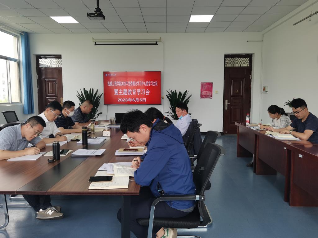 与会人员集体学习了《习近平新时代中国特色社会主义思想的世界观和方法论专题摘编》部分章节。党委委员、机械工程系副主任王彦峰和员工第一党支部书记宋梦秋作重点交流发言。