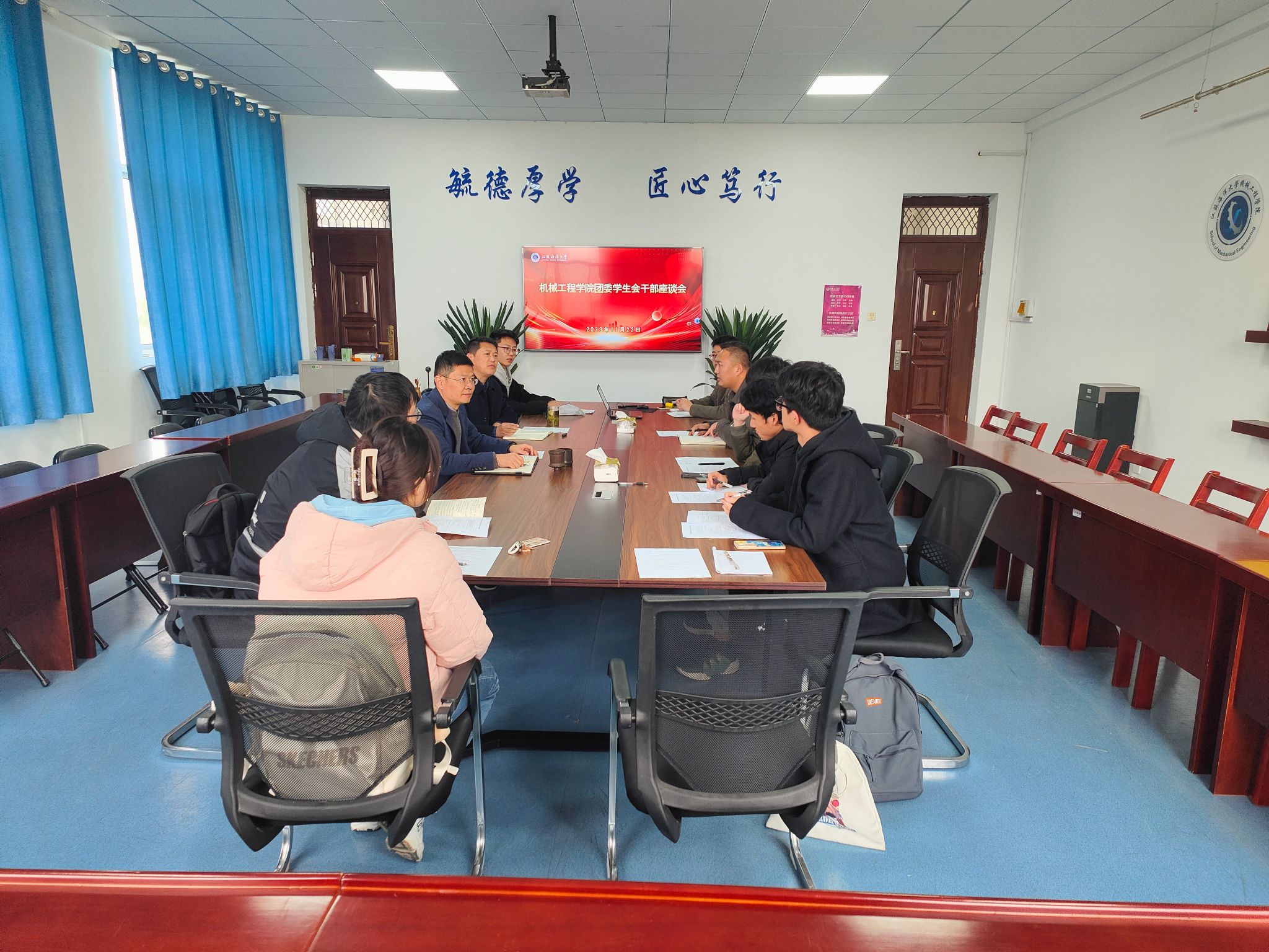 11月22日,伟德国际bevictor1946团委员工会干部座谈会在机械楼N302会议室举行。公司党委书记王秋玉、副书记高勇、团委负责人马奔传、员工会主席、员工团委副书记及部分员工骨干代表参加此次座谈会。