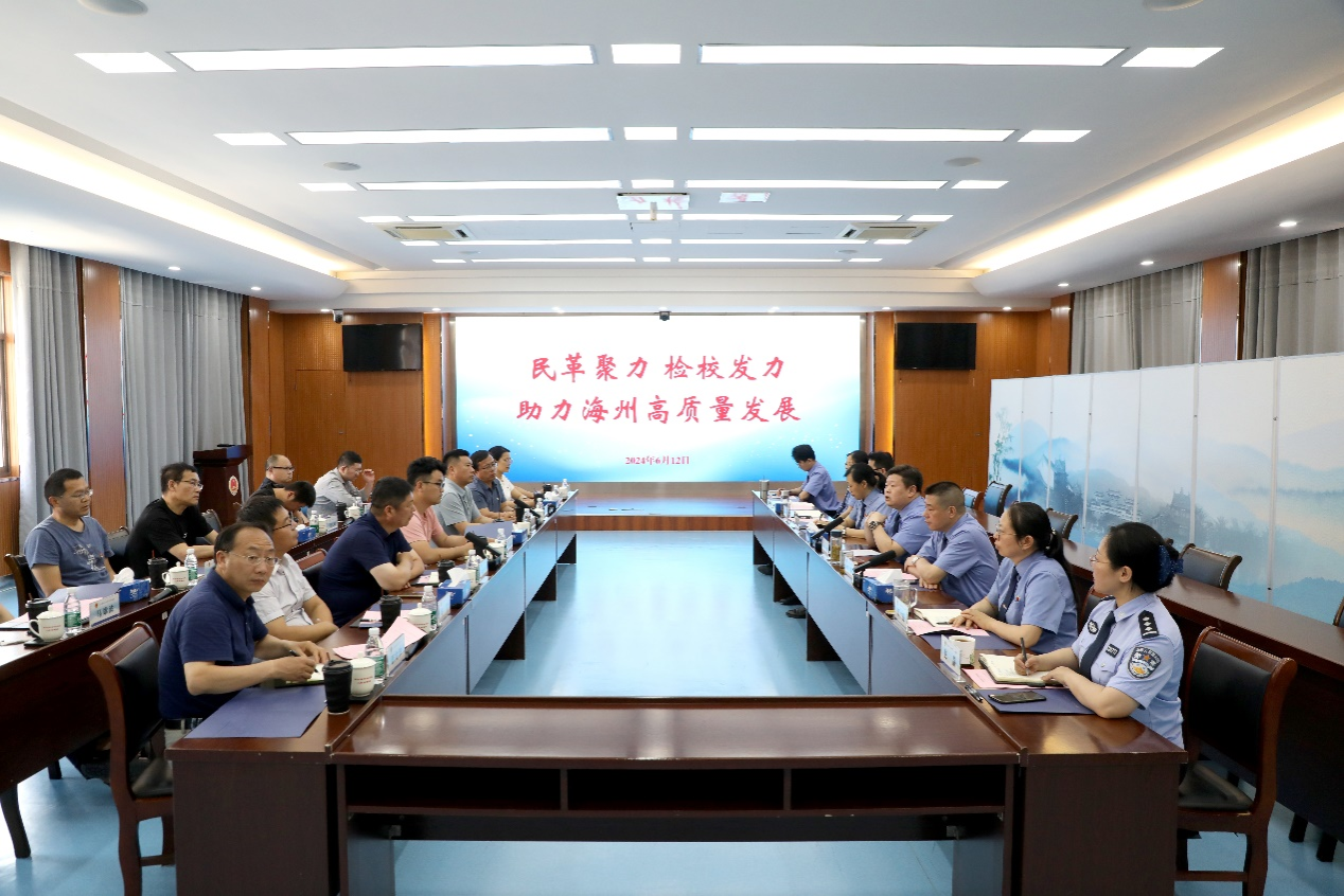 随后,机械电子工程系全体党员、以及高新区民革二支部相关负责人同连云港市海州区检察院进行了座谈交流。肖楠检察长从“聚焦新质生产力,扎实开展‘检察护企’专项行动”“聚焦司法为民,着力开展‘检护民生’专项活动”“聚焦安定和谐,全力做好‘检护安全’专项活动”三个方面,结合四大检察、十大业务,系统全面地介绍了海州区检察院的工作情况以及取得的成效。