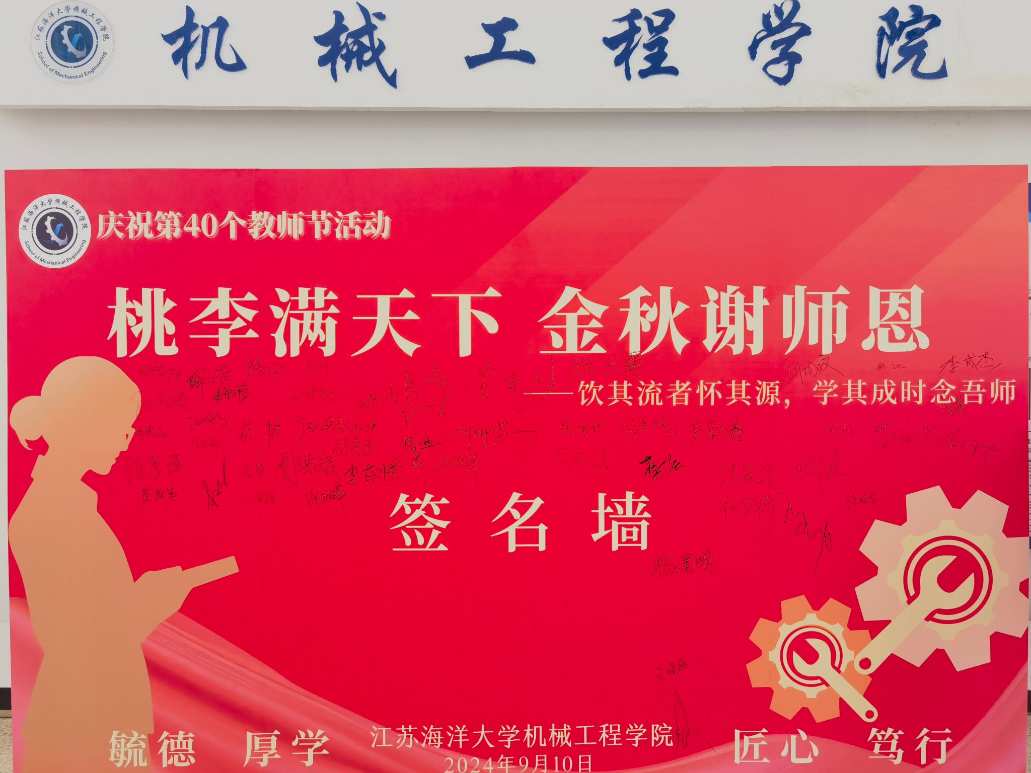 为迎接和庆祝第40个教师节,大力弘扬教育家精神,营造尊师重教的浓厚氛围,9月10日上午,伟德国际bevictor1946在机械楼一楼大厅举办“桃李满天下 金秋谢师恩”教师节庆祝活动,全院百余名师生共同参与了此次活动。