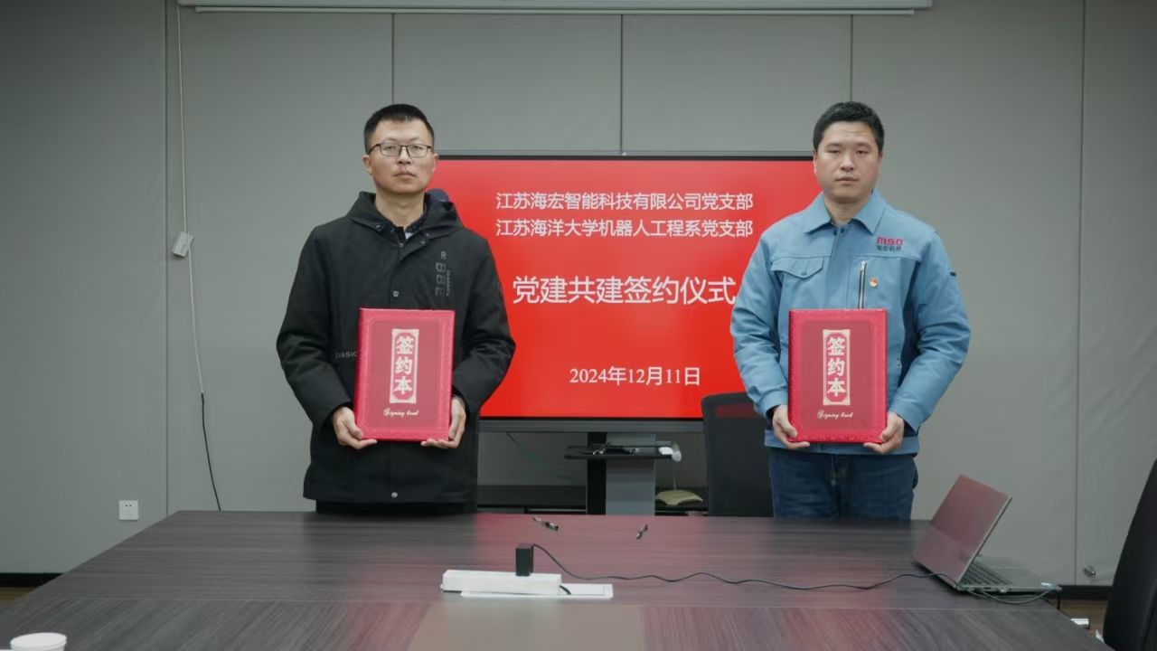 座谈会上,机器人工程系党支部与江苏海宏智能科技有限公司党支部共同签订了结对共建协议。双方表示,将以此次党建共建为契机,建立长期稳定的合作。双方就党支部和党建项目的基本情况进行了详细介绍,并就党建共建、人才需求、技术合作、资源共享、科研成果转化等具体内容进行了深入交流。签约仪式结束后,双方党员干部共同观看了廉洁文化教育专题视频。