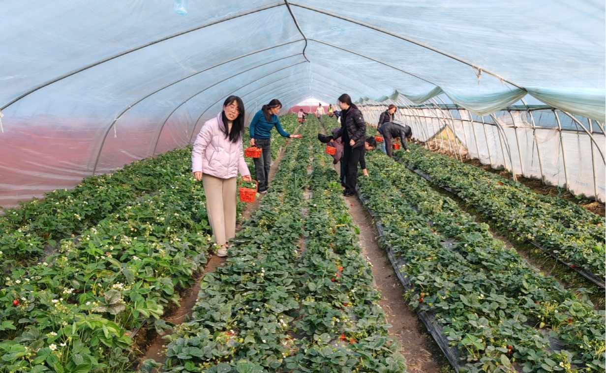 活动当天,在桃李村草莓采摘园,大家提着小篮,兴致勃勃地走进草莓大棚,一边体验亲手采摘的乐趣,感受大自然的馈赠,一边有说有笑互相交流,共享悠闲春光。整个采摘过程欢声笑语、其乐融融,每个人都品尝到甘甜的草莓,收获了轻松和乐趣。