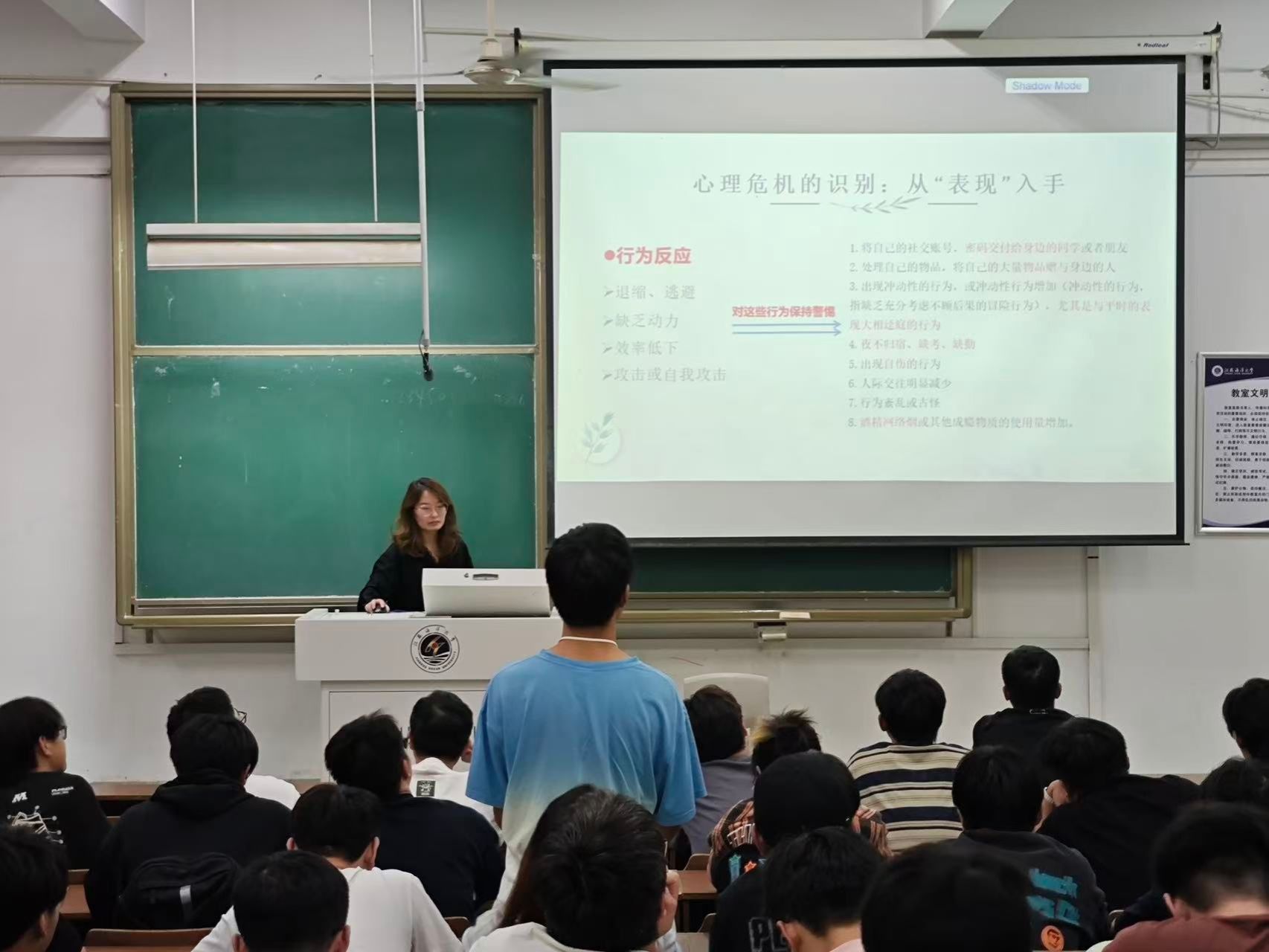 宋梦秋以“心理危机的识别与应对”为主题,主要讲解什么是心理危机、心理危机的识别、如何提供帮助这三个部分内容。从认知反应、情绪反应、行为反应、躯体反应、网络表现及其他反常表现阐述了心理危机该如何识别。对于如何提供帮助,宋梦秋也给出了几点建议,分别是建立关系、放下预设去倾听、静静陪伴以及有边界的助人。最后,宋梦秋分享了江苏省老员工24小时心理热线、苏心app、校心理咨询预约电话等心理支持资源,希望同学们遇到心理问题能够及时寻求帮助。