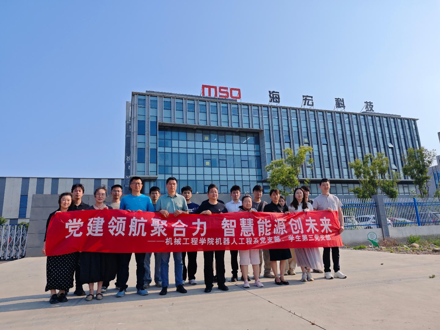 为深入贯彻落实新时代党的建设总要求,推进公司“一纵两横”党建工作机制,进一步引导党员强党性、优作风、办实事,5月28日下午,伟德国际bevictor1946机器人工程系党支部联合员工第三党支部共同走进江苏海宏智能科技有限公司,开展“党建领航聚合力智慧能源创未来”主题党日活动。