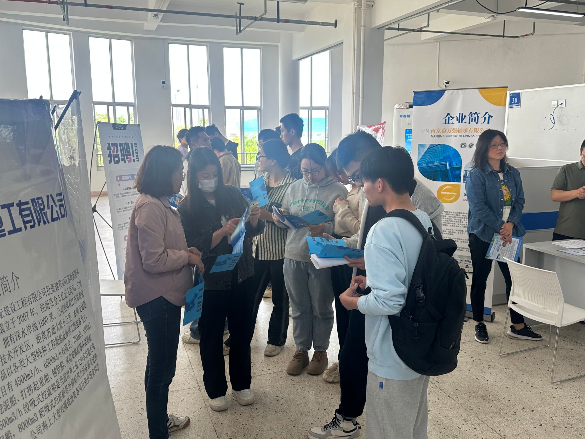 本次招聘会共邀请了35家制造类企业入场,为毕业生提供涉及机械类、自动化类、材料类等专业岗位1300余个,其中机械类岗位674个。招聘会现场人头攒动,气氛热烈,招生与就业处领导、公司领导、辅导员老师与参会企业亲切交流,相关专业应届毕业生忙着到自己心仪的公司递交求职简历,企业招聘人员则是详细介绍业务范畴、岗位职责、薪资福利、晋升空间等信息,并与求职员工围绕未来职业规划展开深入探讨。